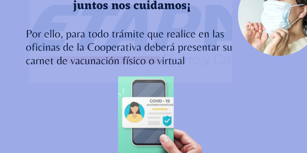 Estimados socios/as y público en general, es importante presentar su carnet de vacunación al asistir a las oficinas de la Cooperativa.