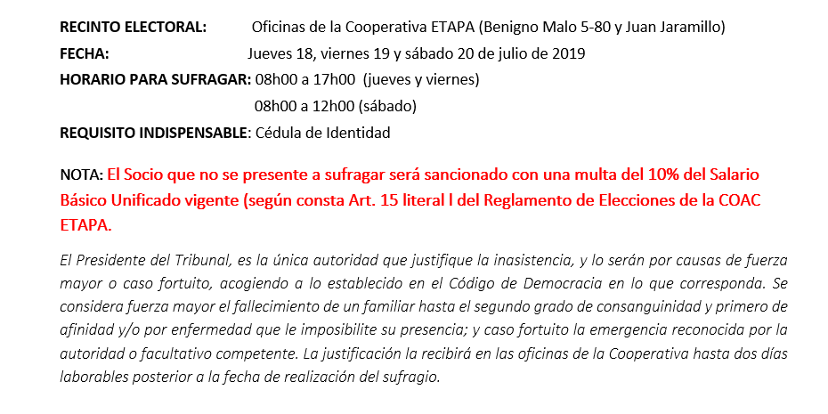 Jul122019Noticias CONVOCATORIA A ELECCIONES DE REPRESENTANTES PERIODO 2019-2021 !TE ESPERAMOS¡ Navegación entre comentariosPestaña anteriorPestaña anteriorRESULTADOS DE LAS VOTACIONES – ELECCIÓN DE REPRESENTANTES 2019-2021SiguienteSiguienteREUNIÓN DE REPRESENTANTES LEGALESNoticias RelacionadasConozca sobre la Prevención del Terrorismoenero 26, 2022Comunicadoenero 25, 2022Tus ahorros ¿Están seguros? Infórmate sobre ellodiciembre 9, 2021Créditos rápidos y segurosnoviembre 11, 2021Conozca el resultado de nuestros nuevos Representantes electosseptiembre 13, 2021Candidatos Inscritos para Representantes 2021septiembre 3, 2021