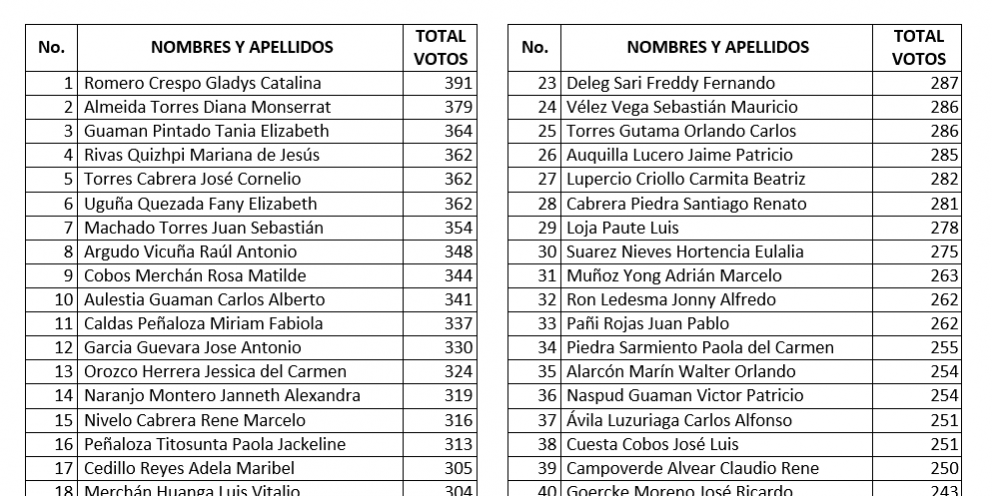 Los resultados del proceso electoral para Elección de Representantes realizado los días 18, 19 y 20 de julio de 2019.